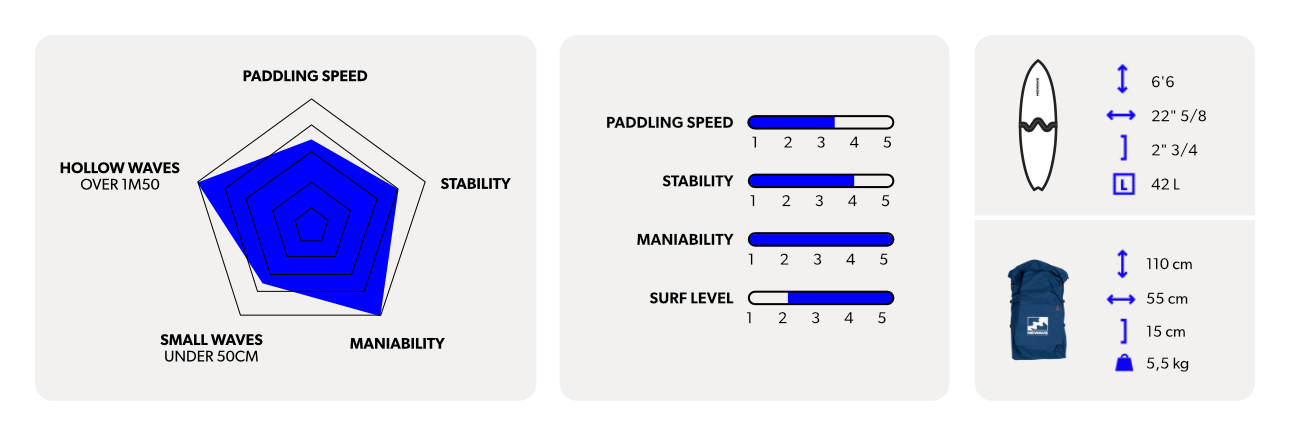 Between stability and responsiveness, the Newave 6’6 offers surfers an excellent compromise between comfort and performance.