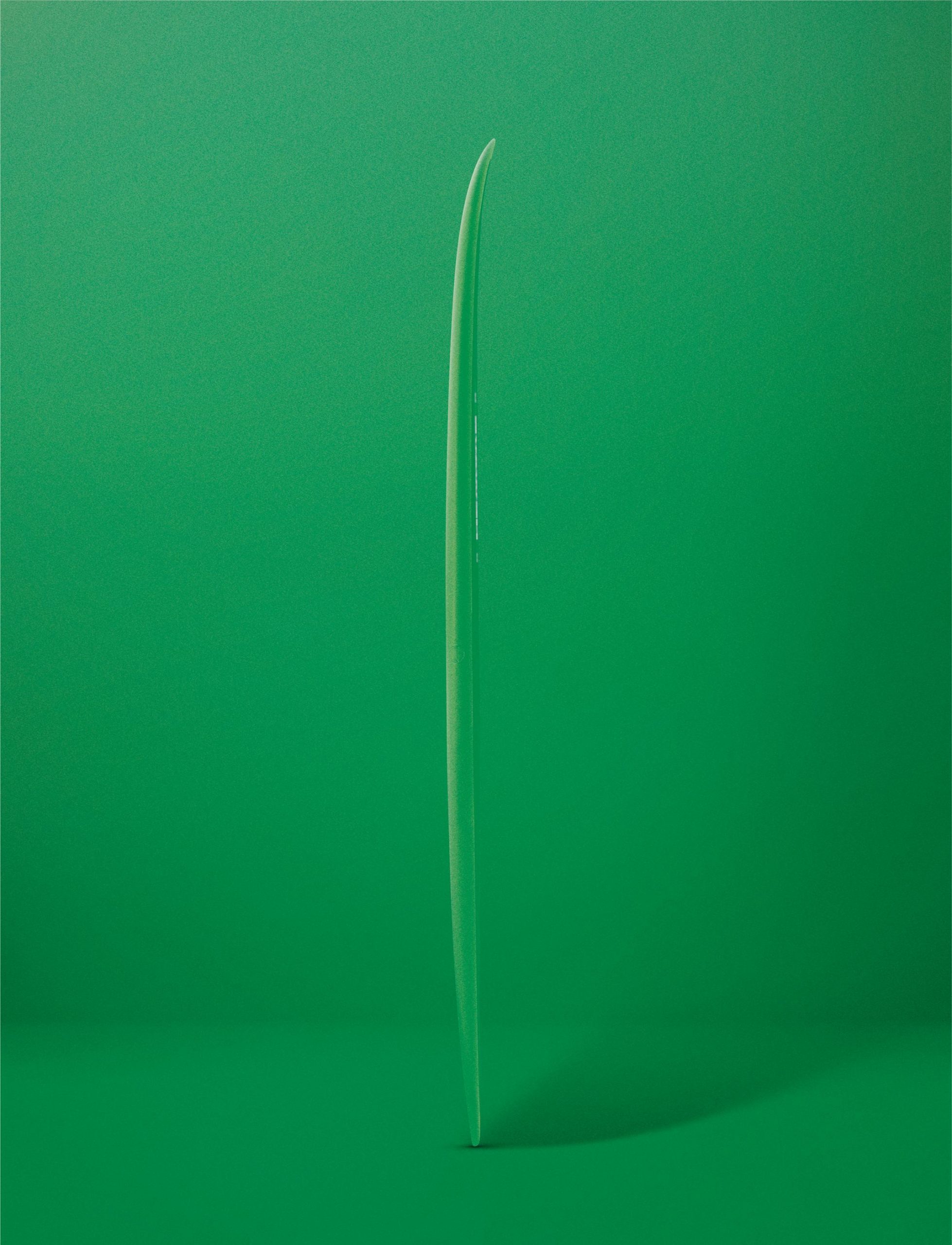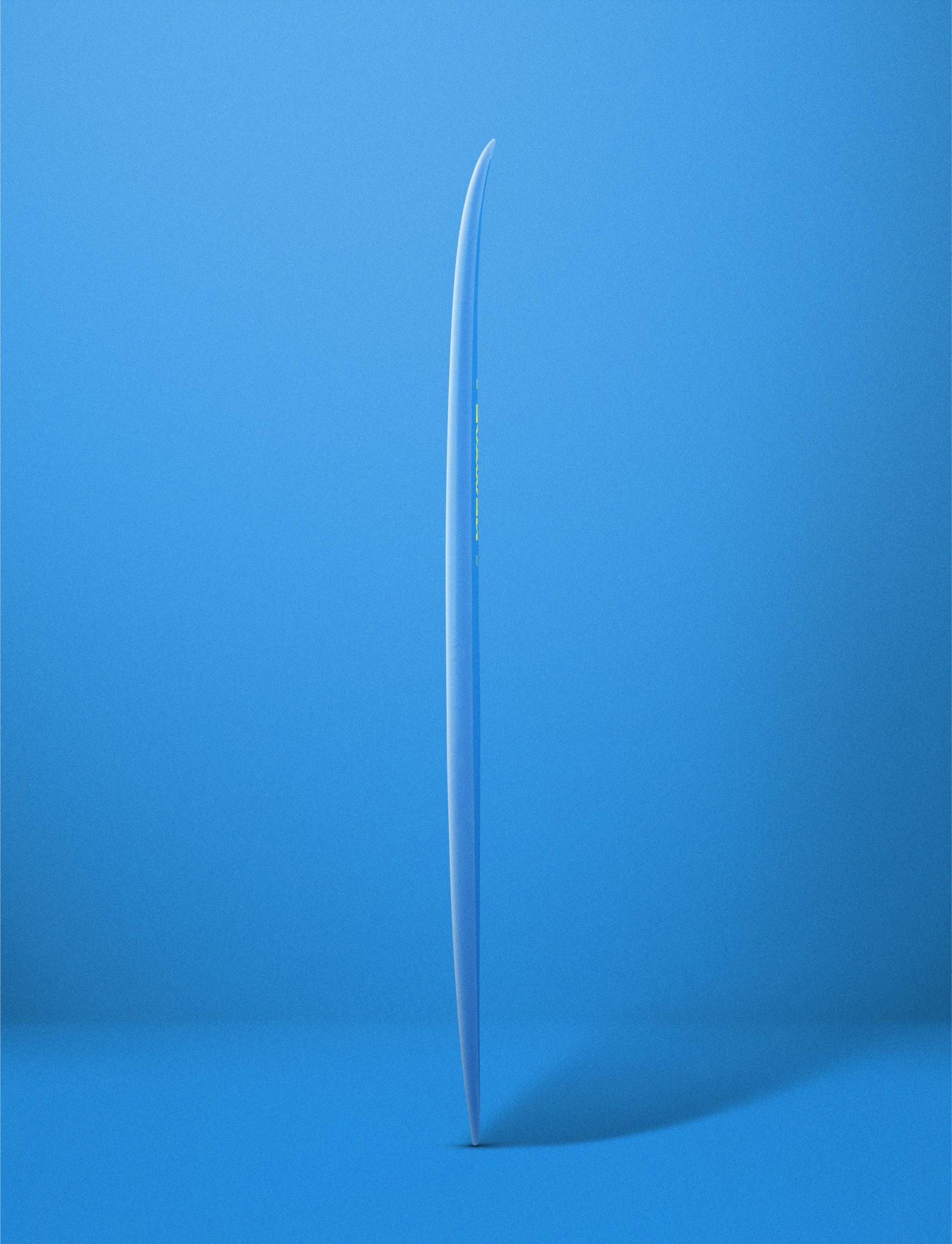 Ensuite, nous avons réfléchi à notre conception pour réduire au maximum l’impact carbone de la fabrication. Contrairement à la majorité des planches, notre processus assure qu’il n’y ait aucun gâchis. Nous utilisons en effet des pains de mousse en polystyrène moulés : aucune matière superflue n’est produite ce qui n’est pas le cas de la plupart des planches qui sont usinées dans un bloc.
