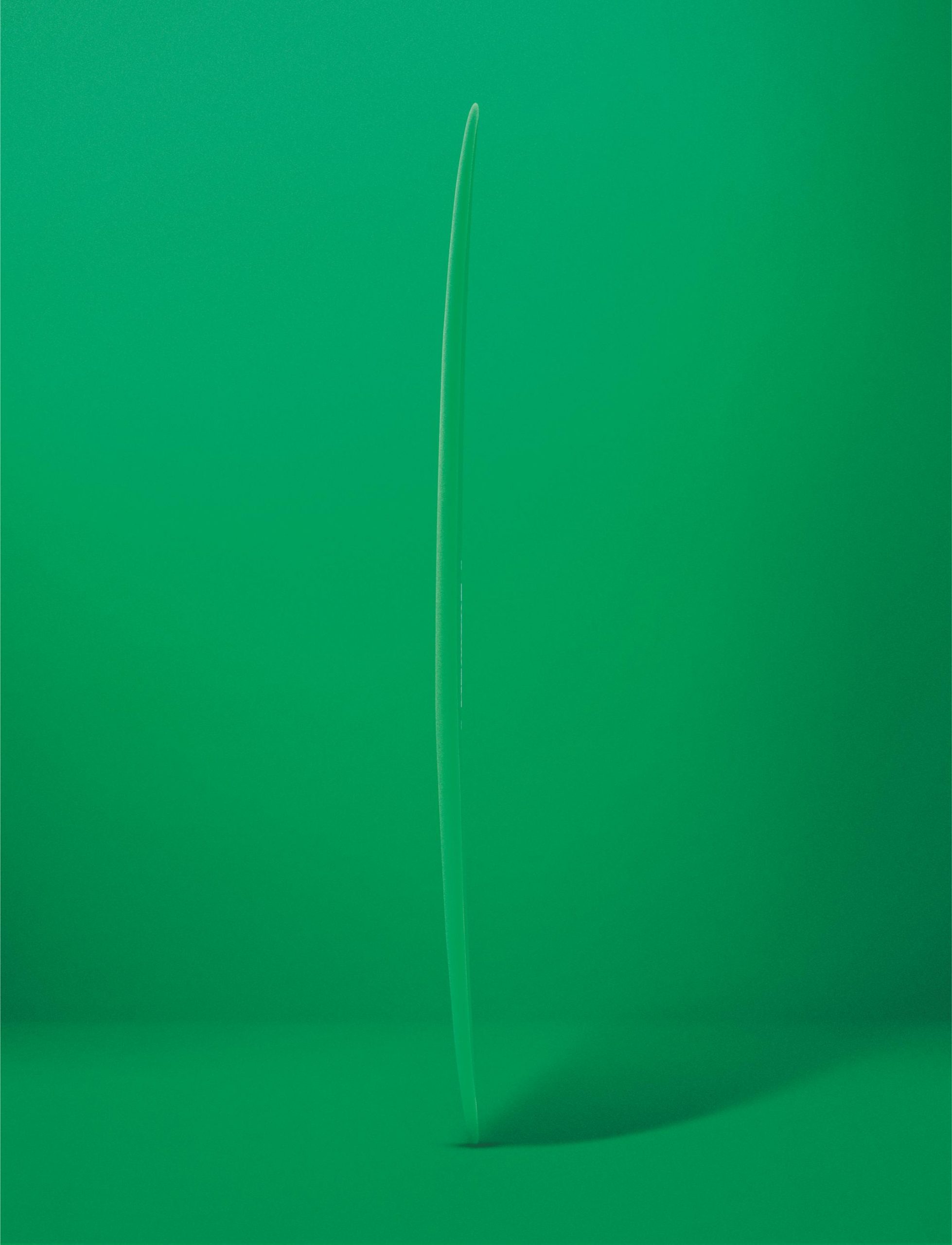 Ensuite, nous avons réfléchi à notre conception pour réduire au maximum l’impact carbone de la fabrication. Contrairement à la majorité des planches, notre processus assure qu’il n’y ait aucun gâchis. Nous utilisons en effet des pains de mousse en polystyrène moulés : aucune matière superflue n’est produite ce qui n’est pas le cas de la plupart des planches qui sont usinées dans un bloc.